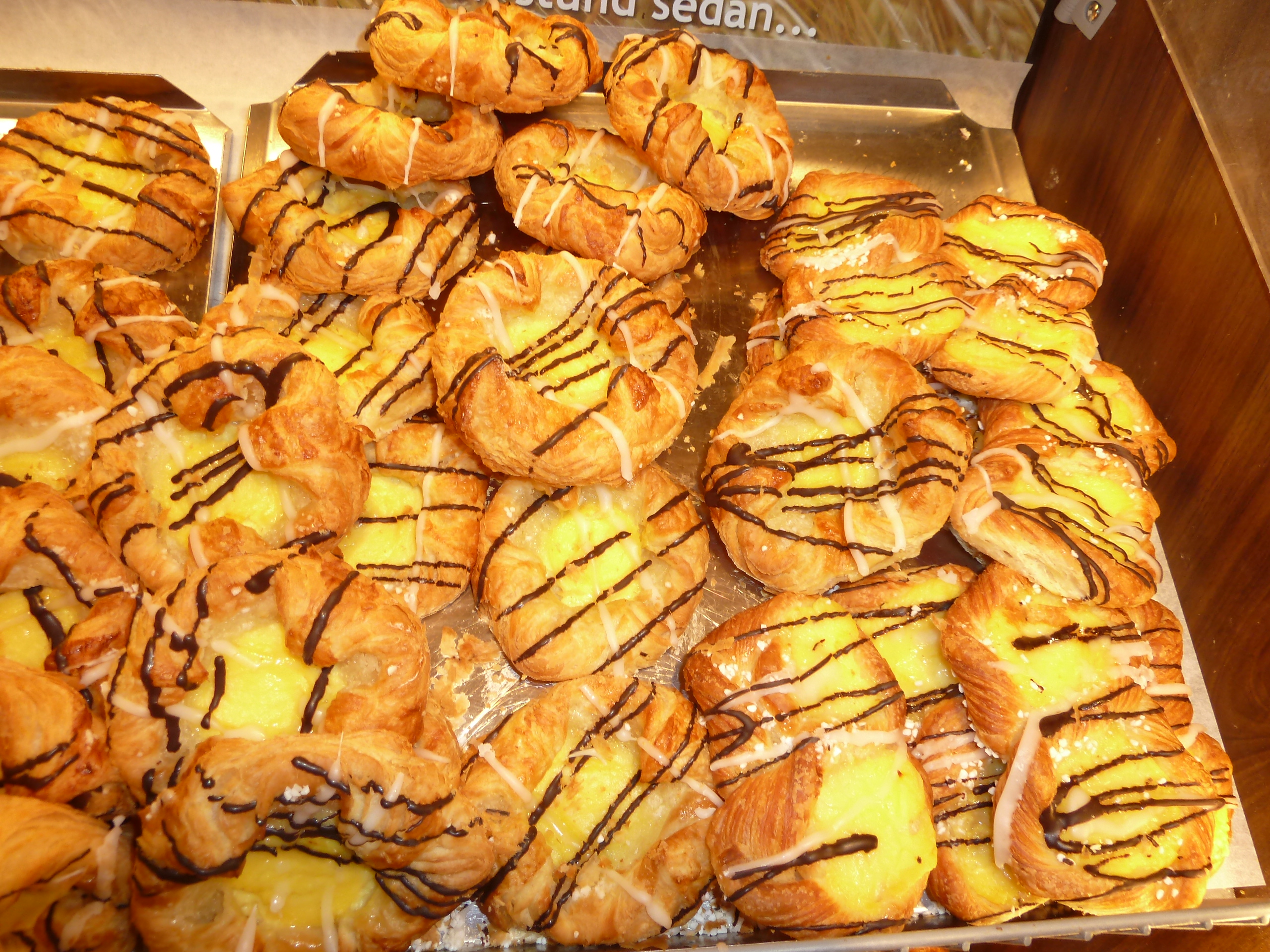 On my quest for cinnamon buns in Sweden, I came across a lot of wienerbröd (literally “Viennese bread” or otherwise known as a plain old Danish pastry). The popular variety in Sweden have a custard-like filling, with icing on top.