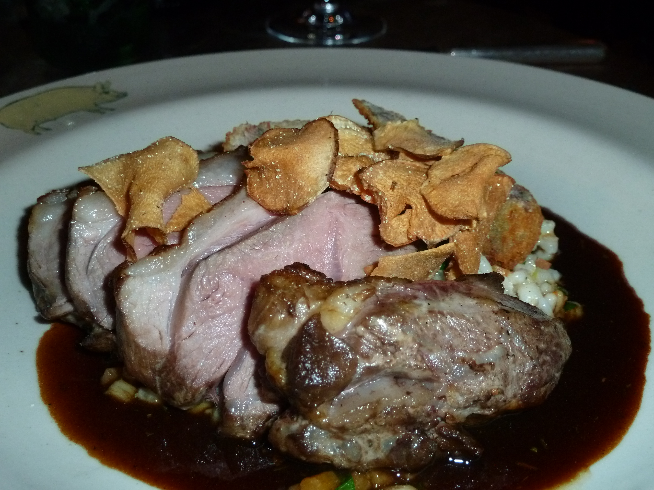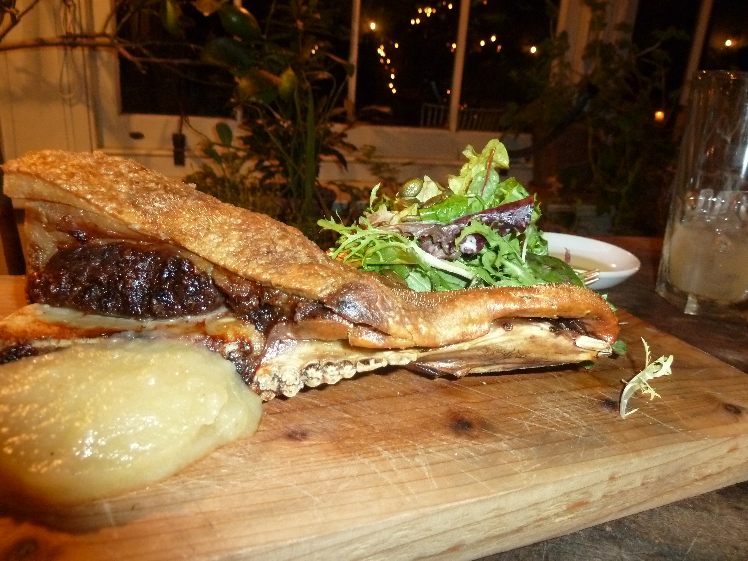On the advice of a friendly waitress (I believe genuinely friendly in this case!), I ordered Roasted Bath Chap (£15.50). This is pig cheek served on the bone, and so if you order this, do expect a third of a pig’s skull to end up in front of you. Actually, it almost didn’t end up in front of me, because a waiter assumed that a lady would not be eating a pig’s head with teeth (he inspired my piece on food and sexism).