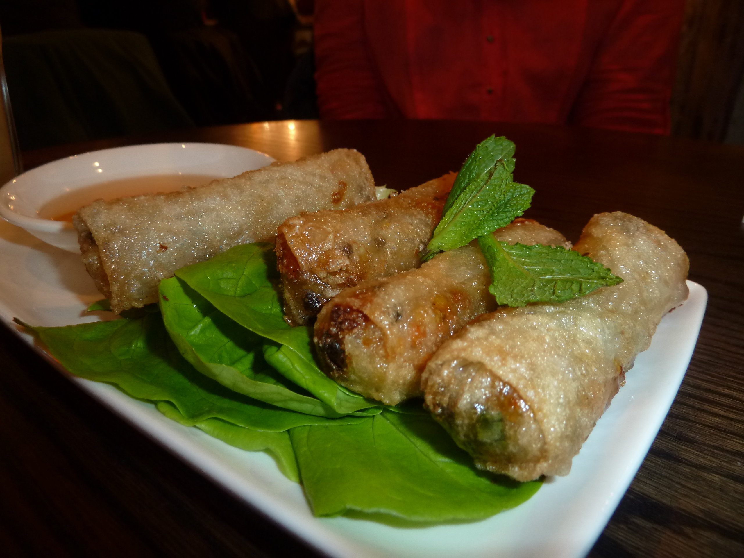 We also tried Chả giò – crispy spring rolls served with lettuce & herbs – with nước chấm (fish sauce) to dip (veggie £4.75). These were crispy but again had very little flavour!