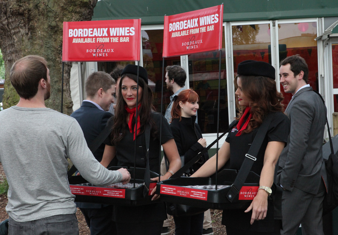 Bordeaux Wines are supporting the event and have deployed some smartly-dressed usherettes with trays of free samples.
