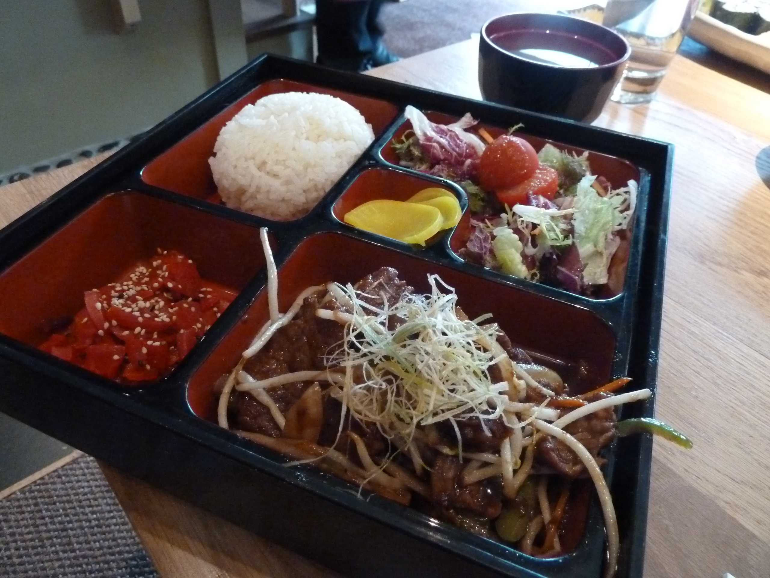 Some scepticism is perfectly understandable. That is until you’re presented with a beef teriyaki bento with perfectly cooked rice, two sets of pickles, a side salad and some miso soup. The teriyaki sauce is fantastic – full of great umami flavour and steering on the right side of sweet – and the salad is fresh with a great tangy dressing. What’s more, if you have penchant for drinking the sauce – and who would blame you when it tastes this good – the waiting staff will take pity on you and provide you with a spoon 😉