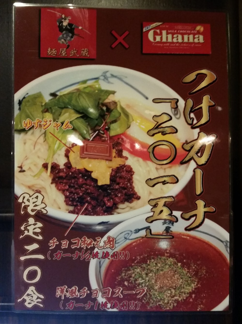 February 13, 2015 It’s Chocolate Noodle time! Valentine’s Day Chocolate Tsukemen at Menya Musashi 2988 × 3991 The Tsuke Ghana 2015 The Tsuke Ghana 2015