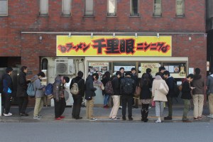 My friend and I joined the ‘two hour’ queue and waited. And waited. One tea, one coffee, a few disposable hand warmers, and THREE AND A HALF HOURS later, we were inside. 980 yen went in the machine, Big Steak Ramen picture was pressed, and preparatory breath fresheners were pocketed.