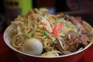 It was simply incapacitating. The sirloin steak was beautiful – succulent meat with a beautiful beef flavour. As for the rest? A garlicky, salty lethally heavy concoction. This style of ramen is known as jiro kei (Jiro-style) after the store that originally popularised this style. Most of the bowl was just noodles – which were actually excellent, closer to tsukemen noodles in their thickness and slightly chewy texture – but there was very little broth. What broth there was was extremely salty – a pork and soy sauce mix. A mysterious sieved sauce (it’s great to watch them prep it), a darker sauce and garlic mayonnaise were added on top and necessary to give the noodles flavour. But they also made it stomach-churningly rich. I speak as a big eater, a voracious eater, an experimental eater. But there was no way my stomach could hack this dish, and my friend and I felt very guilty at not being able to finish it.