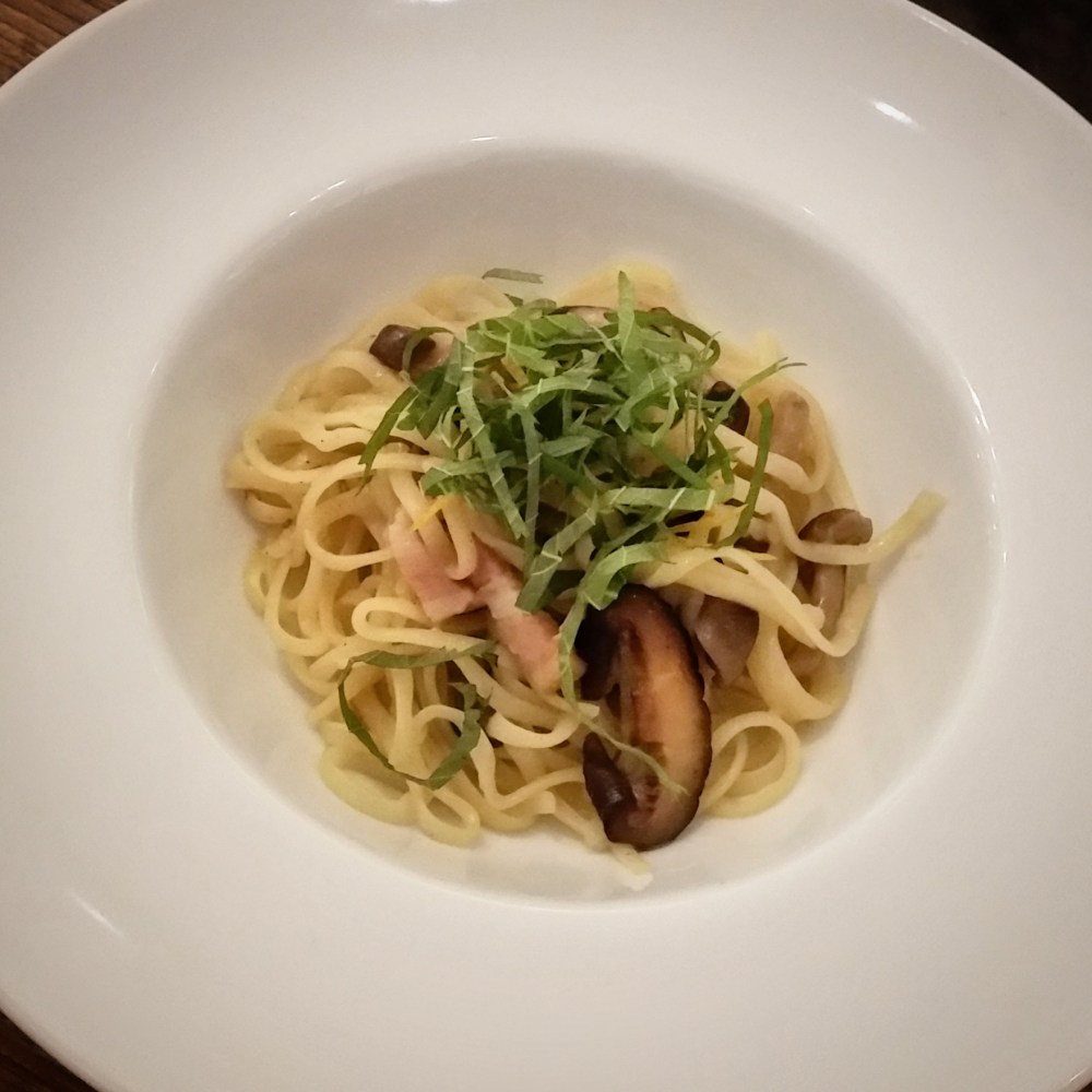 April 17, 2016 Art for Thought…Food as Art? An 8-course tasting dinner 1761 × 1762 IMG_20160417_013033 Bacon mushroom pasta with oba and yuzu