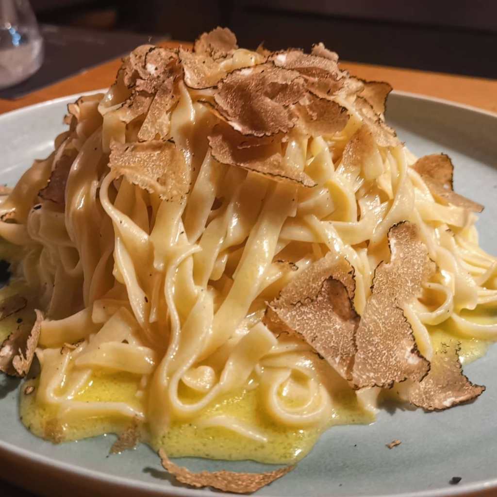 A few queries, and I confirmed that yes, they had upped the portion to 300g and I realised I must fo the same. Sarah, the chef, warned us that 300g of fresh pasta is equivalent to about 600g when cooked. But I was determined and before long, I was ogling my own carb mountain, shimmering with melted butter. I began my hike and immediately realised this was more than a flavour stroll but a texture adventure: with just fresh fettuccine, truffle, butter and a dusting of parmesan, the dish is simply, relying on the slatiness, the gentle eaty umami of the truffle and the springy and tongue-teasing smoothness of the pasta. Admittedly, 150g was probably enough, not just because of the portion-size but because it did get a teeny bit repetitive. Fortunately, we took it slowly alongside our glass of red.